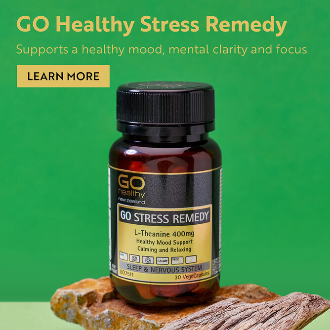 GO Stress Remedy supports mental clarity for those under stress. The 1-A-Day VegeCapsule supports good mood, relaxation, and helps to calm over-stimulation caused by stress, while also supporting mental clarity and focus without drowsiness.